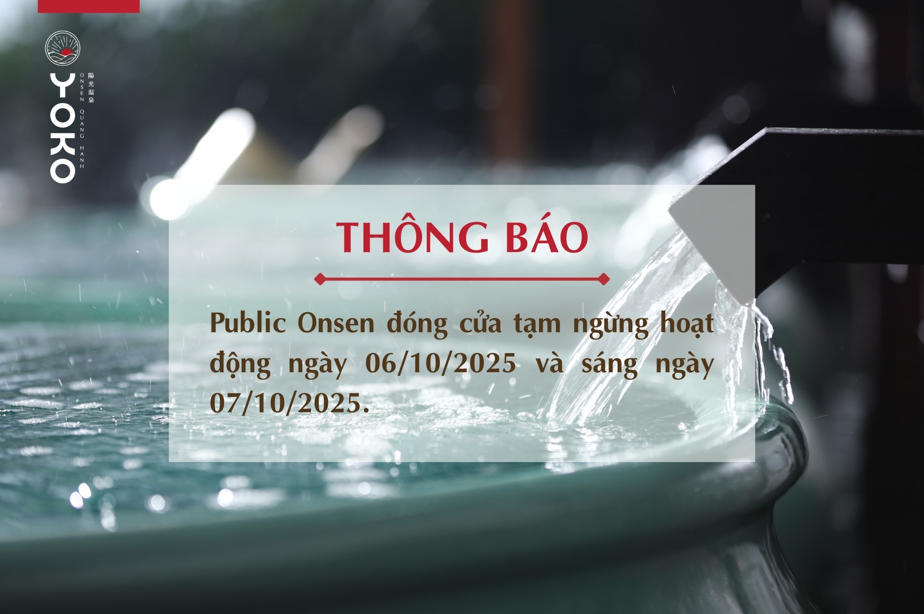 Yoko Onsen tạm ngừng hoạt động Public Onsen ngày 06/10 và sáng ngày 07/10/2025